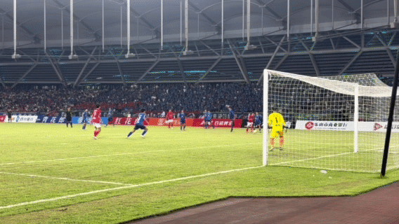 乐山队进的第二球在开场第12分钟,乐山队9号球员宋博涛头球破门。